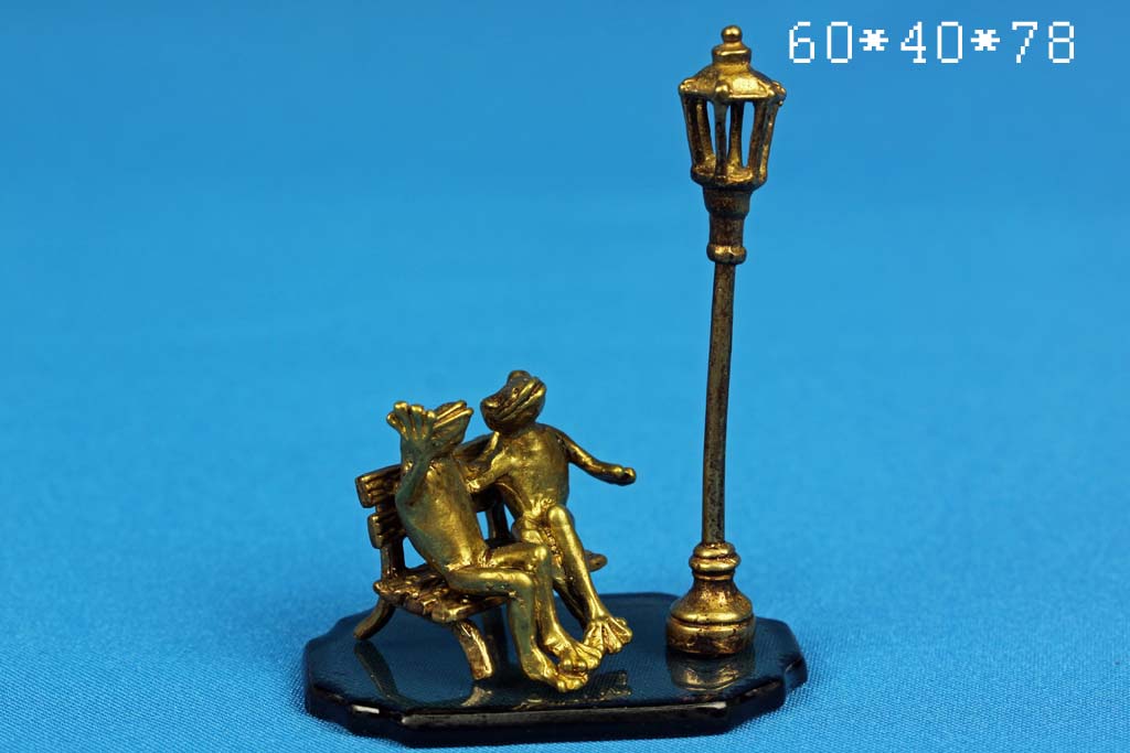 Лягушки под фонарем на скамейке