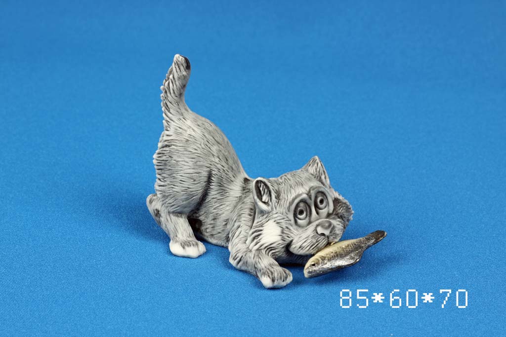 Кот веселый с рыбой